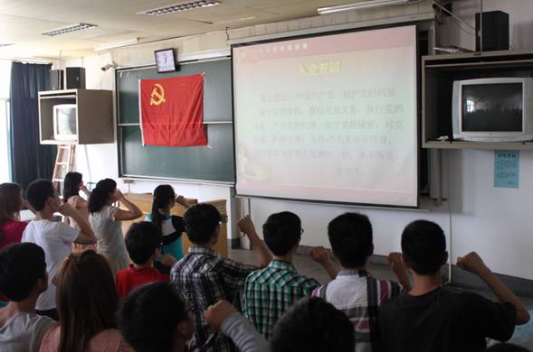 为隆重庆祝建党92周年,重温党的光辉历史,继承和发扬党的光荣传统和优良作风,明确党员的责任和义务,进一步增强党性意识,增强党员队伍的凝聚力和战斗力,6月28日,永利3044集团官网在5101教室举行新党员入党宣誓、老党员重温入党誓词活动,党委副书记杨光红、辅导员王得颖和周洪媛参加了活动。活动由员工第二党支部书记聂玉洁主持。