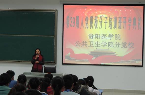 来自2012级预防医学的甘兴文同学代表全体学员发言,承诺在学习中遵守纪律,认真做好笔记,积极发言,思想上和行动上追求进步,以优异的成绩向党组织交上一份满意的答卷,争取早日加入中国共产党。