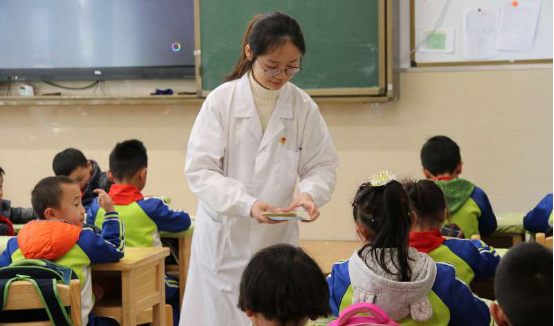 2019年3月18日早上,阳光明媚,微风轻拂,永利3044集团官网分团委负责人李梦娟老师带领老员工青年志愿者来到贵州师范大学贵安附属小学,为一年级的小朋友开展春季流感预防、牙牙健康、预防近视、正确洗手等卫生知识宣教,通过愉悦的游戏互动引导小朋友养成良好的卫生习惯。