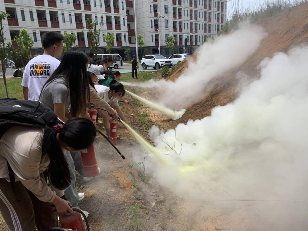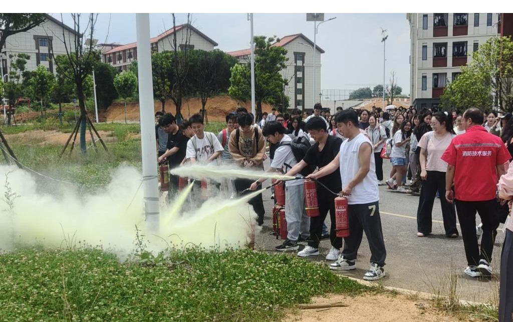 在消防疏散演练前,院员工科组织辅导员向同学们详细讲解教学楼的安全疏散通道分布和紧急疏散路线,并强调疏散演练的基本流程、演练要求、“逃生”动作要领等,确保本次演练能够安全、有序地进行。随后同学们在室外进行了灭火器的使用操作实训。