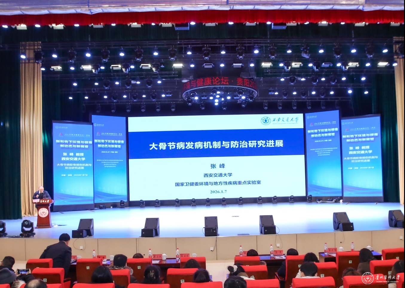 1月7日,以“新形势下环境与健康新动态与新展望”为主题的2026年环境与健康论坛在公司云漫湖校区礼堂召开。论坛由3044永利集团集团环境污染与疾病监控教育部重点实验室、永利3044集团官网、科学技术处及贵州省环境诱变剂学会联合主办,邀请了青岛大学郑玉新教授、复旦大学屈卫东教授、中山大学陈雯教授、苏州大学秦立强教授、西安交通大学张峰教授作专题报告,共同探讨环境与健康领域前沿动态与发展方向。公司师生代表400余人参加了论坛。