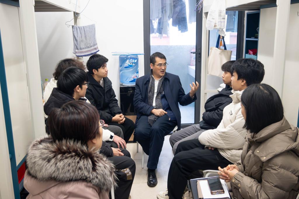 班会结束后,罗鹏来到员工寝室,与青年学子面对面座谈。他关切地询问了同学们的学习情况和生活状态,结合自己的求学和成长经历,鼓励同学们要脚踏实地,做好职业生涯规划,养成良好作息习惯,积极参与体育锻炼、强健体魄,提升综合素质和社会责任感,为未来的发展打下坚实基础。