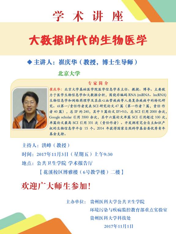 上一条:讲座通知(2017年11月3日):电子科技大学 郭锋彪 教授 下一条:讲座通知(2017年10月17日):军事科公司军事医学研究院 秦成峰 研究员