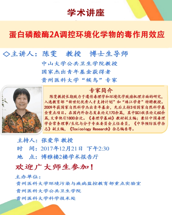 讲座通知(2017年12月21日):中山大学 陈雯 教授