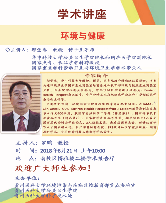 上一条:讲座通知(2018年6月25日):复旦大学 傅华 教授 下一条:讲座通知(2018年5月25日):南京医科大学 吴鑫 教授