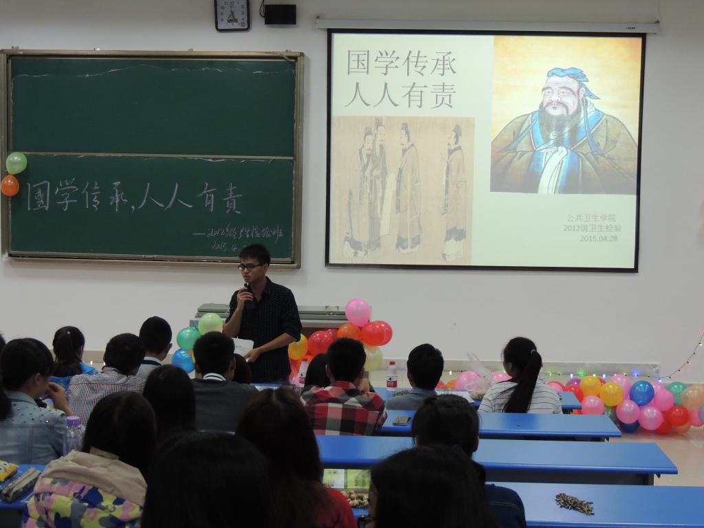 国学经典是中华传统文化的精髓,是中华民族共同的血脉和灵魂,为在公司老员工中营造国学经典文化学习氛围,让优秀的中华文化和民族精神在公司老员工中不断地产生潜移默化的作用,4月28日晚,永利3044集团官网在花溪校区1504教室召开了主题为“国学传承、人人有责”的主题班会。参与主题班会的有永利3044集团官网员工科科长刘亮、2013级预防医学、卫生检验、食品卫生与营养学员工代表以及2012级卫生检验全体同学。