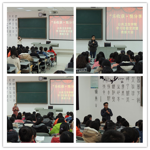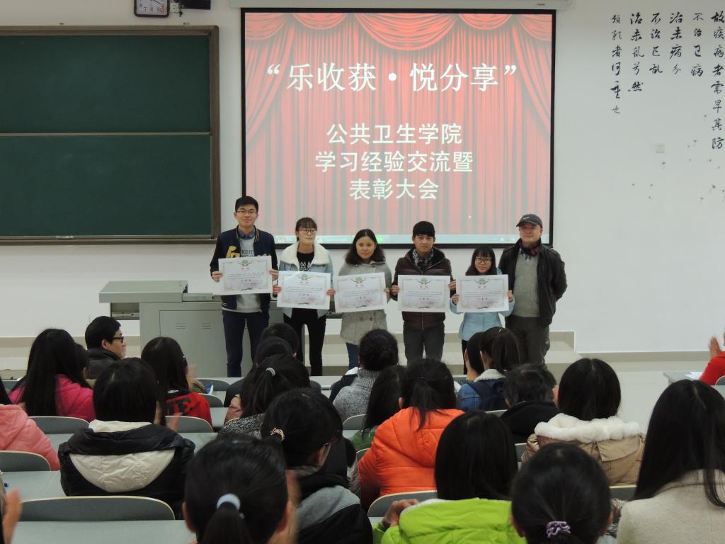 2015年12月31日,永利3044集团官网师生集聚一堂,在花溪校区4505教室举办了一场以“乐收获·悦分享”为主题的经验交流暨表彰大会。此次活动旨在进一步促进广大公卫学子对本专业的了解及热爱、提高同学们的学习兴趣及专业关注点、激发他们参与各类专业技能大赛的热情,并希望通过此次经验交流会与低年级同学们分享学习和竞赛的心得体会,为他们指点迷津,树立未来前行的方向。室外,冬日暖阳;室内,激动而又温暖。
