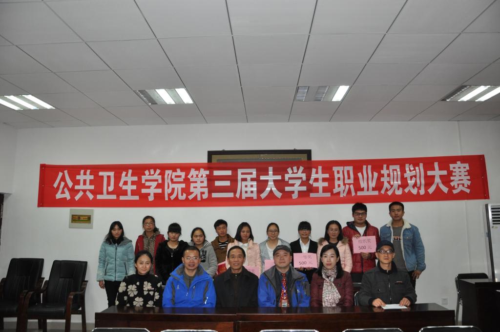本次大赛自11月25日启动以来,得到了公司2016级广大新生的积极响应,初赛共收到68件参赛作品。经过初赛,11名同学的作品脱颖而出,进入决赛环节。决赛过程中,每位选手从自我分析、环境分析、背景分析、职业定位、达到职业目标的方法与途径等方面陈述个人职业规划设计。现场汇报答辩结束后,熊模平对此次职业规划设计大赛进行了点评与总结,充分肯定了各位参赛选手个人职业规划中的优秀之处,也针对各项不足提出了中肯的建议,并希望全体同学对自己的职业目标要进行及早、清晰地定位,并朝着自己的目标不懈努力。最后,根据决赛成绩和评委评议意见,评选出一等奖1名(2016级预防医学辛华莹),二等奖2名(2016级预防医学张爱霞、2016级预防医学陈玲),三等奖3名(2016级预防医学罗佳、2016级卫生检验与检疫付相、2016级食品卫生与营养学王顺兰),优秀奖5名(2016级卫生检验与检疫周廷、2016级预防医学李雅文、李勇、曹小涛、罗帮翠)及团体组织奖1项(2016级预防医学),各位领导嘉宾、评委教师为获奖员工颁发奖状,并与获奖选手合影。