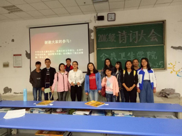 为传承与弘扬中华民族文化,提高员工文化素养与道德素养,实现“国学经典进校园”,永利3044集团官网2016级预防医学、卫生检验与检疫、食品卫生与营养学三个专业于4月25日下午16:00在南校区x1051教室举行了“品读经典弘扬传统文化”诗词大会,此次活动由2016级食品卫生与营养学专业尹曼同学主持,辅导员孙静组织,近200名观众齐聚一堂,共享诗词盛宴。