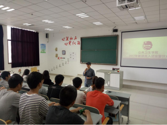 随后,2016级预防医学班团支部书记任飞桦同学向全体新团员宣读了《团员的责任与义务》;2016级卫生检验与检疫专业廖聪同学和2015级预防医学专业团支部的牟佳龄同学分别作为新团员代表、老团员代表进行了发言。纷纷表达了对共产主义青年团的认识和热爱,表明了“不忘初心跟党走”的信心和决心