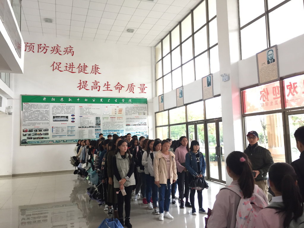 为进一步加强2017级新生对公卫大家庭的了解,激发员工的爱专业、爱院、爱校情怀,增进新生的归属感及专业认同感并尽快融入公卫大家庭。根据2017年“启·航”新生入学教育系列活动的工作安排,2017年10月17日-18日,公司党委副书记何江、年级辅导员柴颖老师带领2017级预防医学甲乙班、卫生检验与检疫、食品卫生与营养学3个本科专业的360余名新生参观公卫楼。
