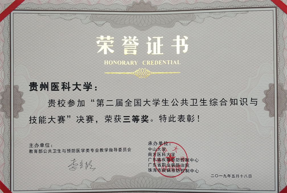 决赛中,公司4名参赛选手沉着冷静,通力合作,充分展示贵医公卫学子的综合素养与实践操作技能,经过激烈的临床基本技能、个体防护、样品采集、现场检测、卫生处理5项公共卫生基本操作技能竞技,公司代表队最终荣获决赛三等奖。