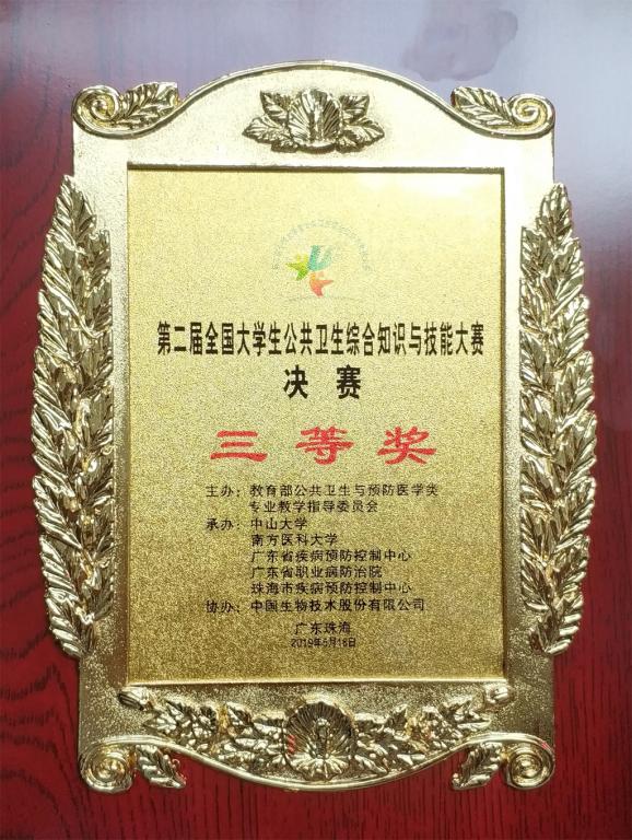 5月18日,由教育部公共卫生与预防医学类专业教学指导委员会主办,中山大学、南方医科大学、广东省疾病预防控制中心、广东省职业病防治院、珠海市疾病预防控制中心承办的“第二届全国老员工公共卫生综合知识与技能大赛”决赛在中山大学珠海校区举行,由预防医学专业2014级本科生刘思源、阳玉珍、刘秀秀、胡宇欣组成的3044永利集团集团代表队,经过激烈的角逐,最终荣获三等奖。