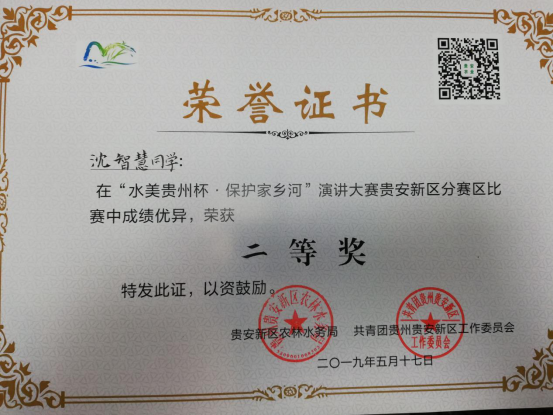 比赛选手演讲围绕“保护家乡河”主题,选择水资源保护、节水护水、河流湖库生态保护、水污染防治等知识。评委根据演讲内容、语言表达、演讲技巧、形象风度、综合印象及脱稿要求5个标准,现场对演讲选手进行评分。经过激烈角逐,2018级食品卫生与营养学专业沈智慧同学荣获新区演讲二等奖。