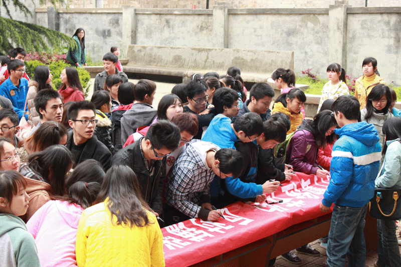 公司举行“厉行勤俭节约,反对铺张浪费”系列活动启动仪式及签名活动 根据公司文件《关于开展“光盘行动”的通知》(党办发〔2013〕8号)精神,公司党政领导高度重视此项工作,召开了专题会议,制定了工作方案。以“厉行勤俭节约,反对铺张浪费”为目标,通过开展小型多样的主题活动,倡美德、树新风,提高师生思想觉悟,形成“节约光荣、浪费可耻”的优良风尚。 2013年4月12日,永利3044集团官网在校本部和花溪校区同时开展了“厉行勤俭节约,反对铺张浪费”系列活动的启动仪式及签名活动。出席该活动的领导有宣传部部长潘丽芬、学工处处长赵平、院团委书记付萍以及公司党政班子,全院共有师生近500余人参加签名活动。 活动现场,师生们纷纷表示以实际行动从我做起,从身边做起,节约粮食,节约能源。既要做“光盘”行动的践行者、示范者更要做“光盘行动”的推动者。