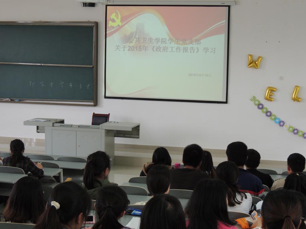 本次政府工作报告采取自学和集体学习两种形式进行。 5 6 5 15 是自学阶段,由各位员工党员借助相关媒体资料,自学《2015年政府工作报告》。 5 18 日中午 一点,员工党支部在花溪校区4601教室开展集中学习。2013级卫生检验专业员工党员李润琴同学用PPT再一次与大家重温了《2015年政府工作报告》的要点;各专业推荐的小组代表结合自己的学习体会分别发言;最后,党支部书记刘亮作总结发言,他说,作为一名青年老员工,我们既要学好专业知识,同时又要密切关注党和国家的时事政治,丰富自己的理论知识,提高自己的理论修养。