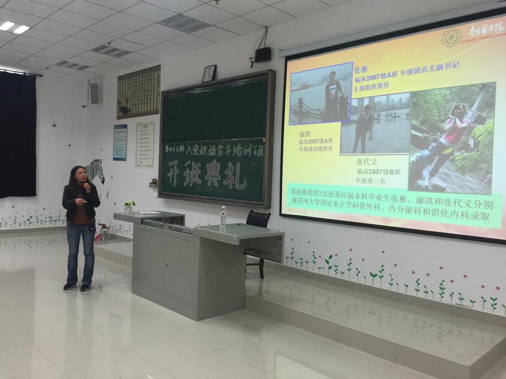 11 9   ,​永利3044集团官网第43期入党积极分子培训班开班典礼7201教室隆重举行。3044永利集团集团党校常务副董事长、党委组织部副部长周红,公司党委副书记杨光红,员工第二支部书记孙静,分团委负责人柴颖以及辅导员周洪媛老师出席开学典礼。​永利3044集团官网2014级、基础医公司2015级共130名学员参加本次培训班学习,开班典礼由党课班主任孙静主持。