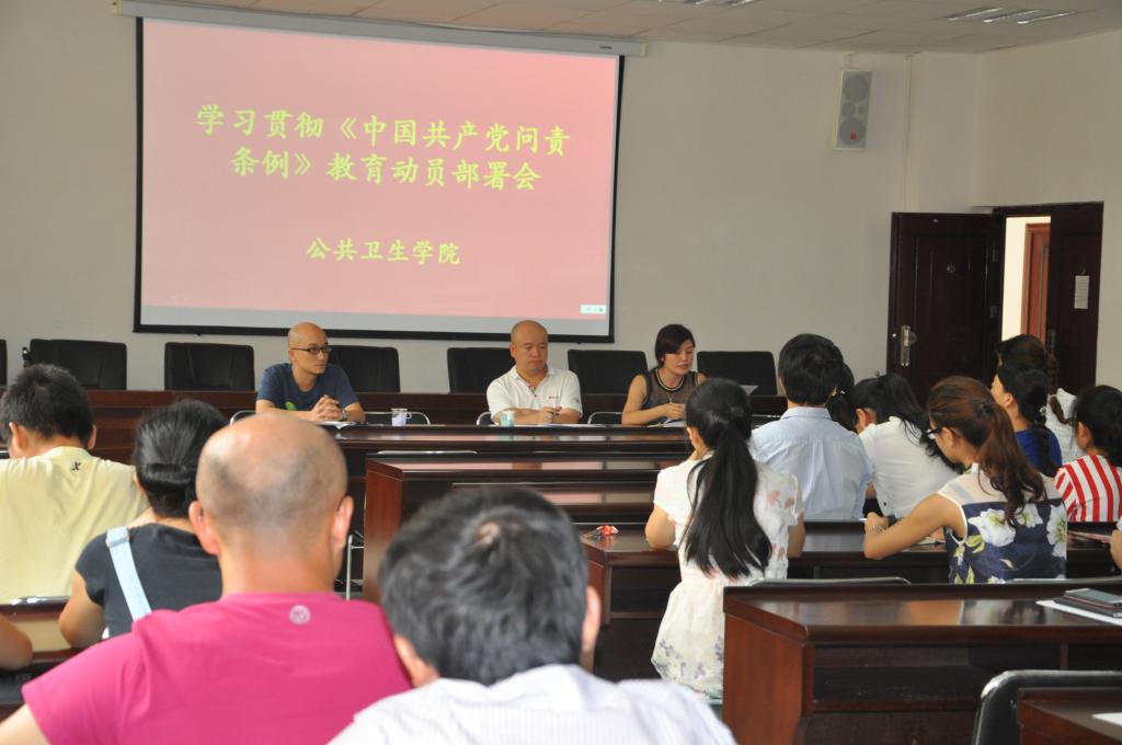 首先,杨光红传达了“中共3044永利集团集团委员会关于认真学习贯彻《中国共产党问责条例》的通知(贵医党通[2016]29号)”精神及“永利3044集团官网学习贯彻《中国共产党问责条例》的实施方案”。随后,杨光红带领全体党员共同逐条学习了《条例》全文,并着重就《条例》的问责原则、问责主体和对象、问责情形、问责方式等内容作了详细解读。