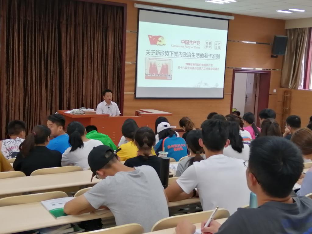 开班典礼后,姚思勤为发展对象集中培训班学员开讲第一课——《关于新形势下党内政治生活的若干准则》。