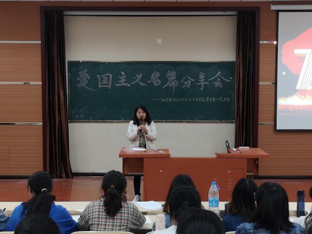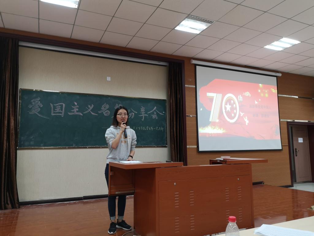 在分享会上,支部书记郝雪君为同学们朗诵了《祖国啊,我亲爱的祖国》,抒发了对祖国历史的缅怀之情,或深沉、或激昂的话语彰显了作为中华儿女的自豪,其饱满的热情更是有力地表达了对祖国美好未来的期待之情。