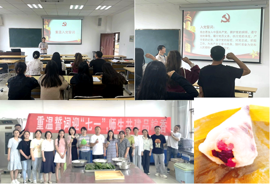 教工第一党支部和研究生第三党支部共同举办“重温誓词迎七一,师生共建品粽香”主题党日活动。通过重温入党誓词、分享端午节的由来和常识、交流包粽子的手法和技巧等方式,充分展现食品营养的专业特色,传承中华饮食传统文化,牢记入党初心使命,坚定理想信念。全体党员纷纷表示:应该继承和弘扬中华优秀传统文化,牢固树立核心价值观,让博大精深的中华优秀传统文化植根于世界文化激荡中,展现出家国情怀和民族精神。