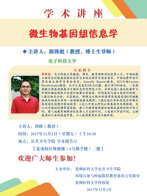 讲座通知(2017年11月3日):电子科技大学 郭锋彪 教授